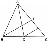 5. In the given figure, AD is a median of {tex}\triangle{/tex}ABC and E is the midpoint of AD. If BE is joined and produced to meet AC in F then AF = ?