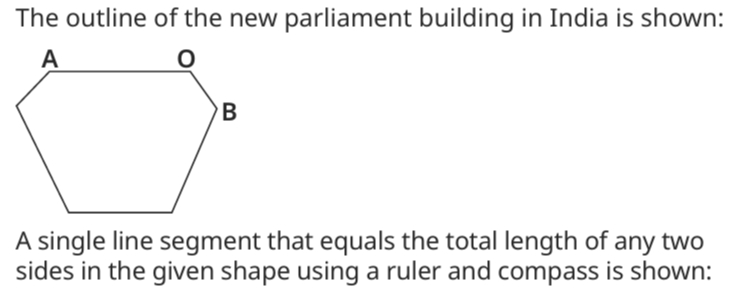 - The outline of the new parliament building in India is shown. Construct a single line segment that equals the total length of any two sides in the given shape using a ruler and compass.
