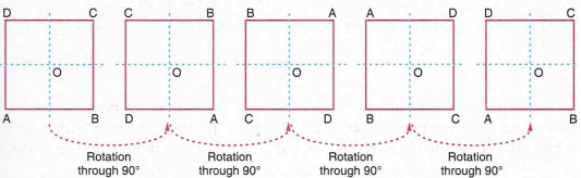 2. Let ABCD be a square with centre O as shown in figure. Let us rotate it through 90o, 180o, 270o and 360o about point O to attain various positions shown below.