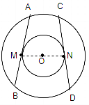 Let the chord AB and CD of outer circle, touch the inner circle at M and N.