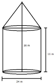 {tex}\therefore{/tex} Canvas required for tent = curved surface area of cone + curved surface area of cylinder