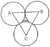 Let A, B, C, be the centres of these circles. Joint AB, BC, CA. Radius of each circle = 6cm . AB = BC = CA = 12 cm .Then,ABC is an equilateral triangle.