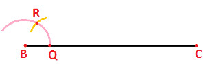 2). Now use compass and open it to any convenient radius. And with B as center , draw an arc which cuts line segment BC at Q . (as shown below)