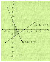 The given system of linear equation is {tex}3x - 4y = 7\ and\ 5x + 2y = 3{/tex}