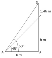 According to question angles of elevation of S and P are {tex}60 ^ { \circ }{/tex}and {tex}45 ^ { \circ }{/tex} respectively.