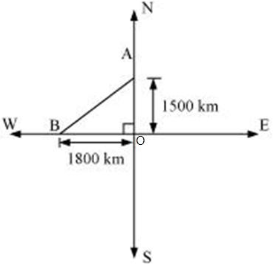 Distance between these planes after {tex}1\frac{1}{2}{/tex}hrs {tex}AB = \sqrt {O{A^2} + O{B^2}} {/tex}