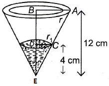 CSA of conical part containing water = {tex}\pi \times 3 \times 5{/tex}= 15{tex}\pi{/tex} cm2