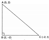 we are given that A (5, 2), B (2, - 2) and C (-2, t) are the vertices of a right-angled triangle with {tex}\angle B{/tex} = 90°.