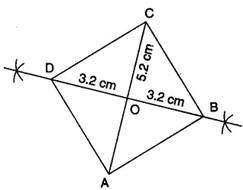 - Cut off {tex}\frac{{6.4}}{2} = 3.2cm{/tex} lengths on either side of the drawn bisector, we get B and D.