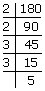 180 {tex}\times{/tex} 5 = 2 {tex}\times{/tex} 2 {tex}\times{/tex} 3 {tex}\times{/tex} 3 {tex}\times{/tex} 5 {tex}\times{/tex} 5