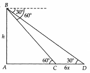 {tex}\therefore \quad \tan 30 ^ { \circ } = \frac { h } { 6 x + t x }{/tex}