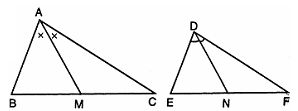 AM is the bisector of {tex}\angle{/tex} BAC and is the corresponding bisector of {tex}\angle{/tex} EDF