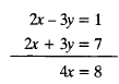 2{tex}{/tex}× 2 - 3y = 1