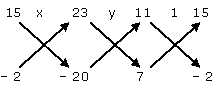 {tex}\Rightarrow \;\frac{x}{{(15)( - 20) - ( - 2)(23)}} = \frac{y}{{(23)(7) - ( - 20)(11)}}{/tex}{tex}= \frac{1}{{(11)( - 2) - (7)(15)}}{/tex}