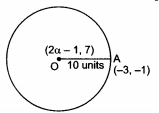 {tex}\Rightarrow{/tex} OA = {tex}\sqrt { ( 2 a- 1 + 3 ) ^ { 2 } + ( 7 + 1 ) ^ { 2 } }{/tex}