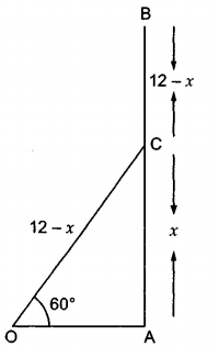 Let AB be the tree of height 12 metres. Suppose the tree is broken by the wind at point C and the part CB assumes the position CO and meets the ground at O.
