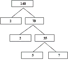 So, the prime factors of 140 = 2 {tex}\times{/tex} 2 {tex}\times{/tex} 5 {tex}\times{/tex} 7 = 22 {tex}\times{/tex} 5 {tex}\times{/tex} 7.