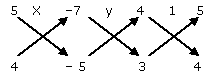 {tex}\frac{X}{{(5)( - 5) - ( 4)( - 7)}} = \frac{y}{{( - 7)(3) - ( - 5)(4)}}{/tex} {tex}= \frac{1}{{(4)(4) - (3)(5)}}{/tex}