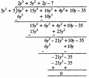 Hence, 3y2+ 5 is a factor of 6y5+ 15y4 + 16y3 + 4y2 + 10y - 35.