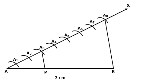 such that AA1 = A1A2 = A2A3 = A3A4 = A4A5 = A5A6 = A6A7 = A7A8 - Join A8B.