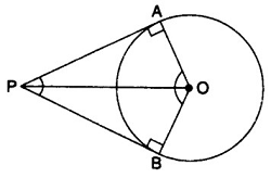 {tex}\angle{/tex}OAP = 90o ...........(1) [Angle between tangent and radius through the point of contact is 90o ]