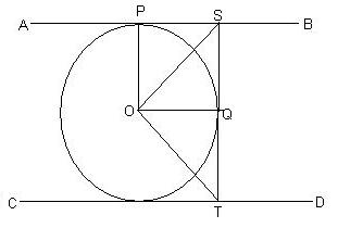 Given, AB and CD are two parallel tangents to a circle with centre O.