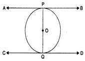 Given: PQ is a diameter of a circle with centre O. The lines AB and CD are the tangents at P and Q respectively.
