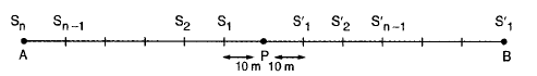 Clearly, there are n intervals each of length 10 metres on both the sides of P. Now, suppose the man starts from A. He picks up the end stone on the left of mid-stone and goes to the mid-stone, drops it and goes to (n - 1)th stone on left, picks it up, goes to the mid-stone and drops it. This process is repeated till he collects all stones on the left of the mid-stone at the mid-stone. So, distance covered in collecting stones on the left of the mid-stones is