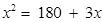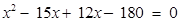 ⇒(x − 15) (x + 12) = 0⇒x = 15, −12