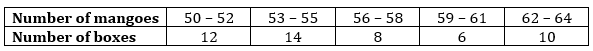Hence mean number of mangoes kept in a packing box is 57.19.