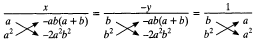 {tex}\Rightarrow{/tex}{tex}\frac { x } { - a ^ { 3 } b ( 2 b - a - b ) }{/tex} = {tex}\frac { - y } { - a b ^ { 3 } ( 2 a - a - b ) }{/tex} = {tex}\frac { 1 } { a b ( a - b ) }{/tex}