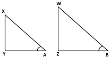 Consider two right triangles XAY and WBZ such that tan A = tan B