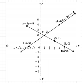 Graph of the given equations x+ 2y = 5 and 2x - 3y = - 4 is as given below: