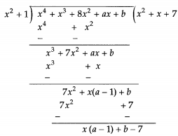 If {tex}x^4+x^3+8x^2+ax +b{/tex} is exactly divisible by x2 + 1, the remainder after division should be zero.