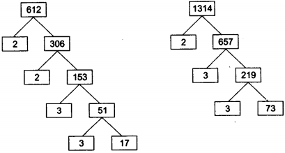 {tex}\therefore{/tex} HCF (612,1314) = product of common terms with lowest power