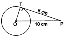 {tex}\Rightarrow{/tex} OT = {tex}\sqrt { O P ^ { 2 } - P T ^ { 2 } } = \sqrt { ( 10 ) ^ { 2 } - ( 8 ) ^ { 2 } } \mathrm { cm } = \sqrt { 36 } \mathrm { cm } {/tex} = 6cm.