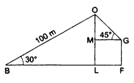 {tex}\frac { O L } { B O } = \sin 30 ^ { \circ } \Rightarrow \frac { O L } { 100 \mathrm { m } } = \frac { 1 } { 2 }{/tex}