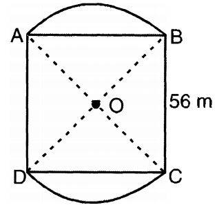 and AO = BO = CO = DO = {tex}\frac{56 \sqrt{2}}{2}=28 \sqrt{2} \;m{/tex}