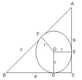 The circle touches the sides BC, CA, AB of the right triangle ABC at D, E and F respectively. Let BC = a, CA = b and AB = c