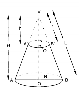 {tex}\therefore \quad \frac { V O ^ { \prime } } { V O } = \frac { O ^ { \prime } A ^ { \prime } } { O A } = \frac { V A ^ { \prime } } { V A } \Rightarrow \frac { h } { H } = \frac { r } { R } = \frac { l } { L }{/tex}