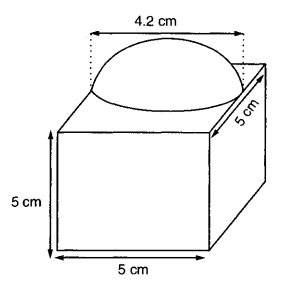 S = Total surface area of the cube - Base area of hemisphere + Curved surface area of hemisphere
