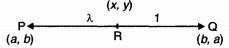 Let point R(x + y) divides the line joining P(a,b) and Q(b,a) in the ratio {tex}\lambda{/tex} : 1.