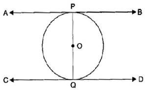 {tex}\because{/tex} CD is a tangent to the circle at Q and OQ is the radius through the point of contact.