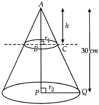 According to the question, The height of a cone is 30 cm. From its topside a small cone is cut by a plane parallel to its base.