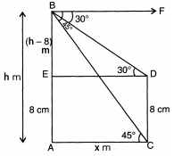 {tex}\tan 30 ^ { \circ } = \frac { B E } { E D }{/tex}