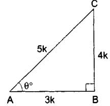 {tex}\sin \theta = \frac { A B } { A C } = \frac { 4 k } { 5 k } = \frac { 4 } { 5 }{/tex}