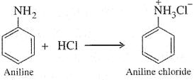 Aniline forms anilinium chloride salt with aq. HCl which is soluble in water.