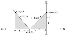 Area {tex}= \int_{ - 6}^{ - 3} {-\left( {x + 3} \right)dx + \int_{ - 3}^0 {\left( {x + 3} \right)dx} } {/tex}